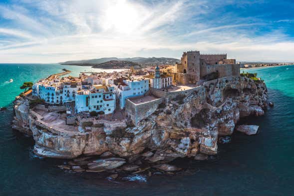 Após a chegada, iniciaremos uma caminhada guiada pelo centro histórico desta bela cidade. Iremos primeiro ao antigo parque de artilharia para contemplar em todo o seu esplendor a fachada do castelo de Peníscola. Você sabia que este edifício foi construído pelos Cavaleiros Templários no final do século XIII?